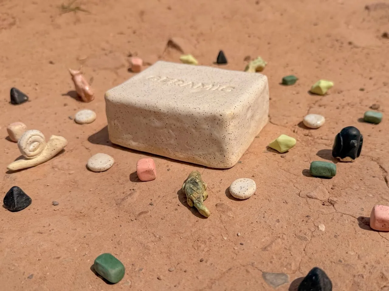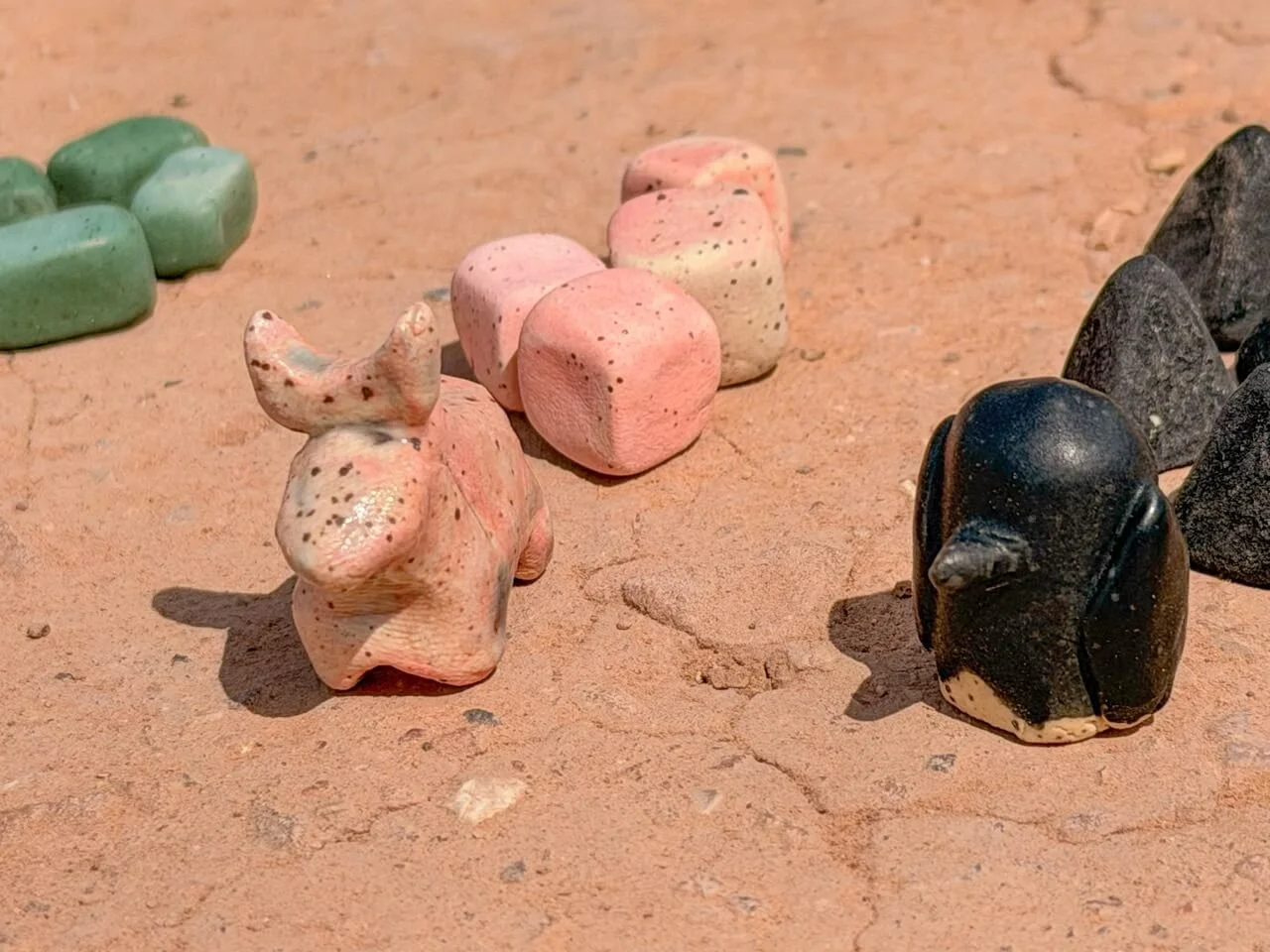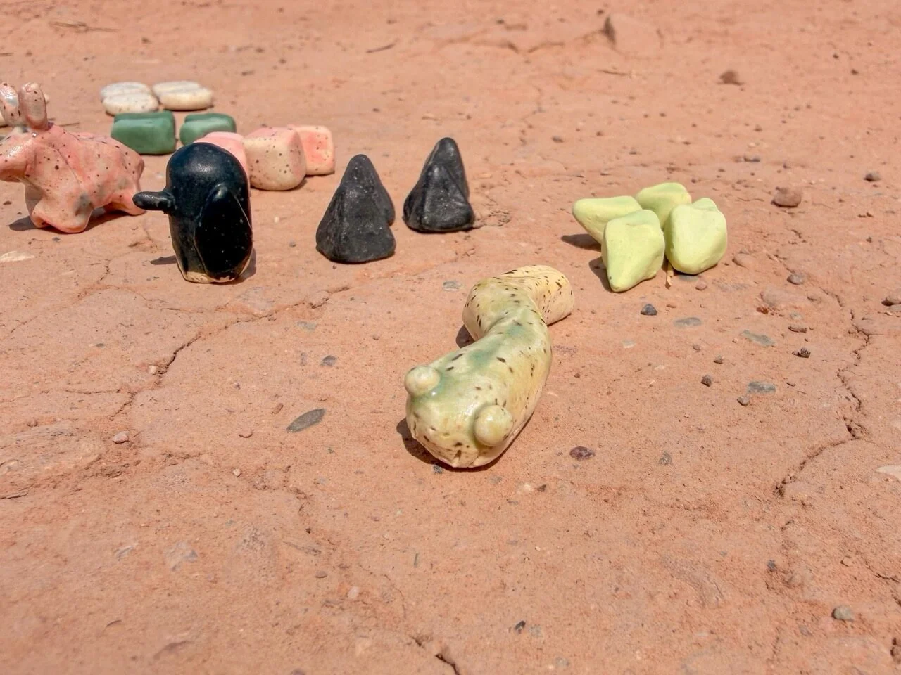 ・20 stoneware beads in 5 shapes & colors