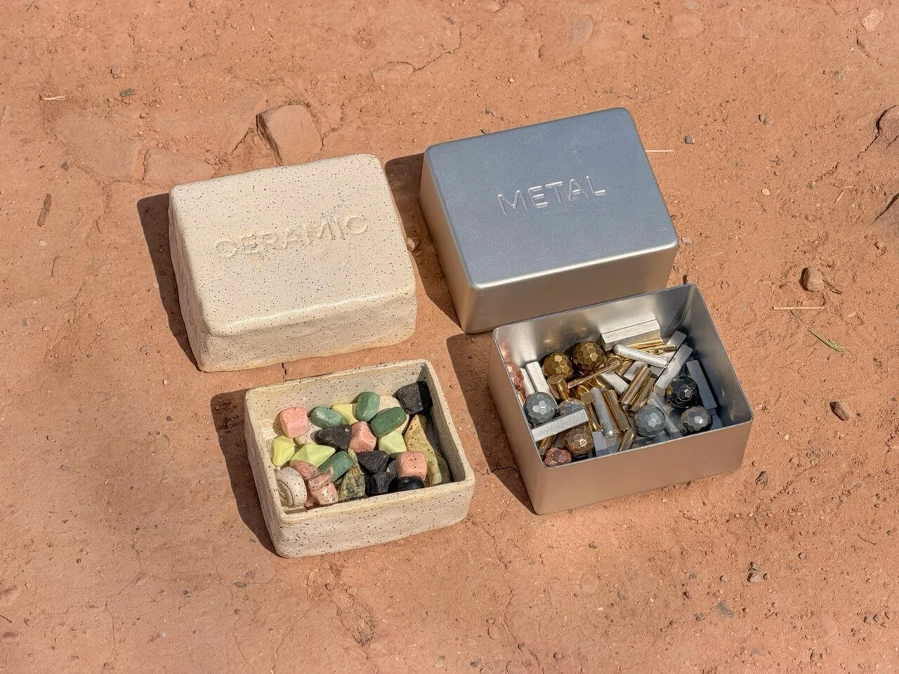 ・1 two-piece telescoping stoneware box (with iron filings and a natural glaze)