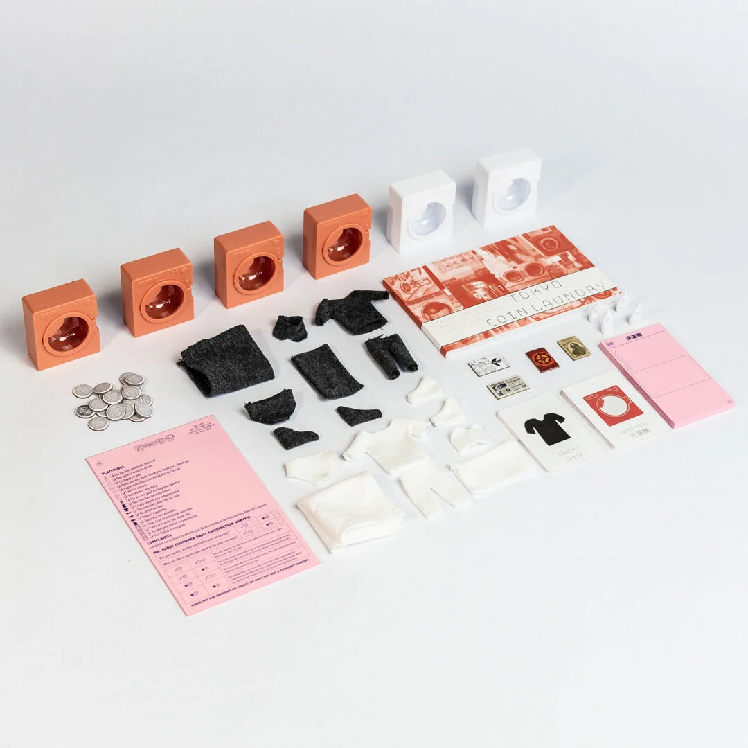 Just like TOKYO JIDOHANBAIKI, TOKYO COIN LAUNDRY features 7 unique game rules out of the box from talented guest designers across the globe, using the same components.